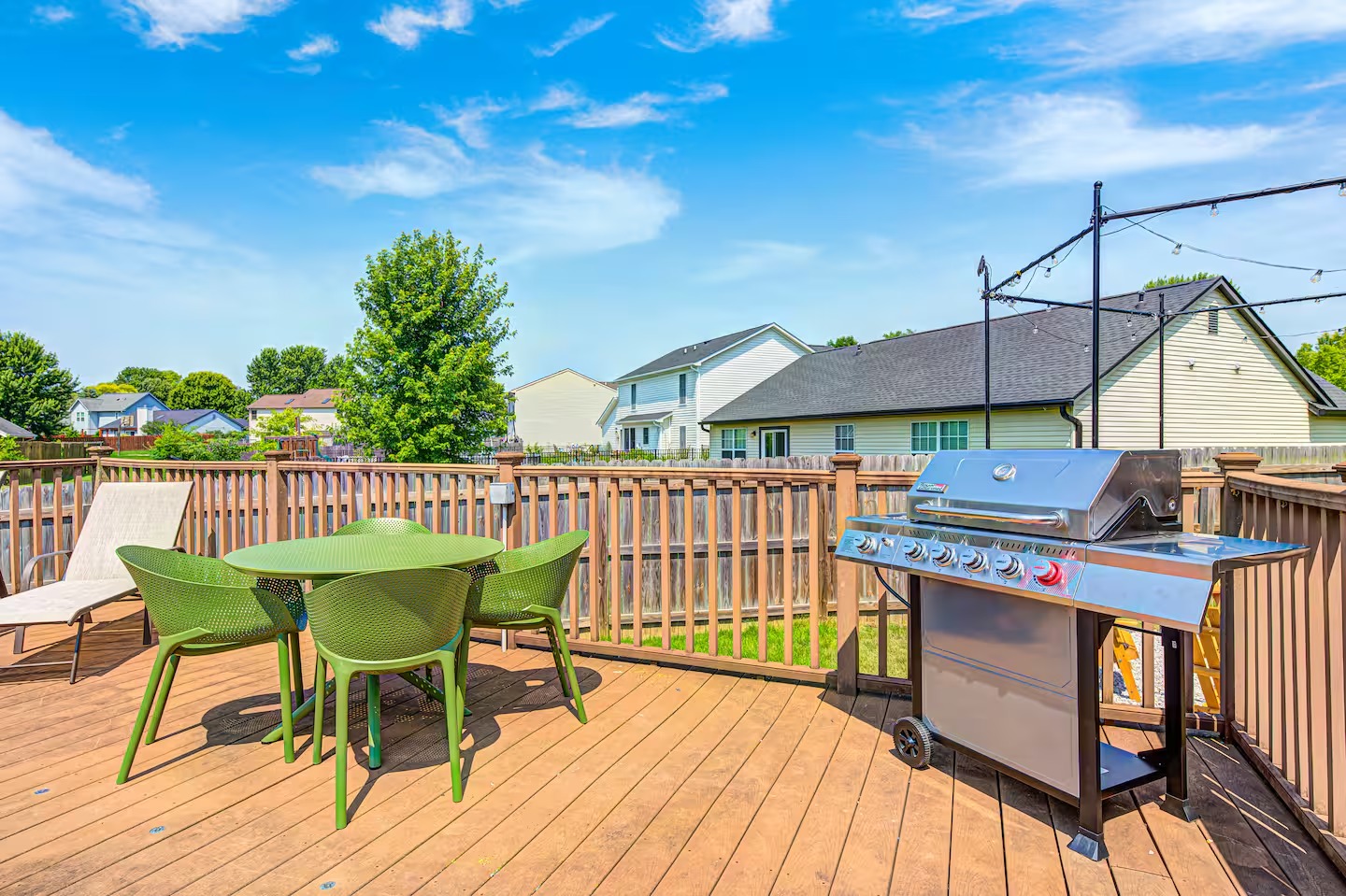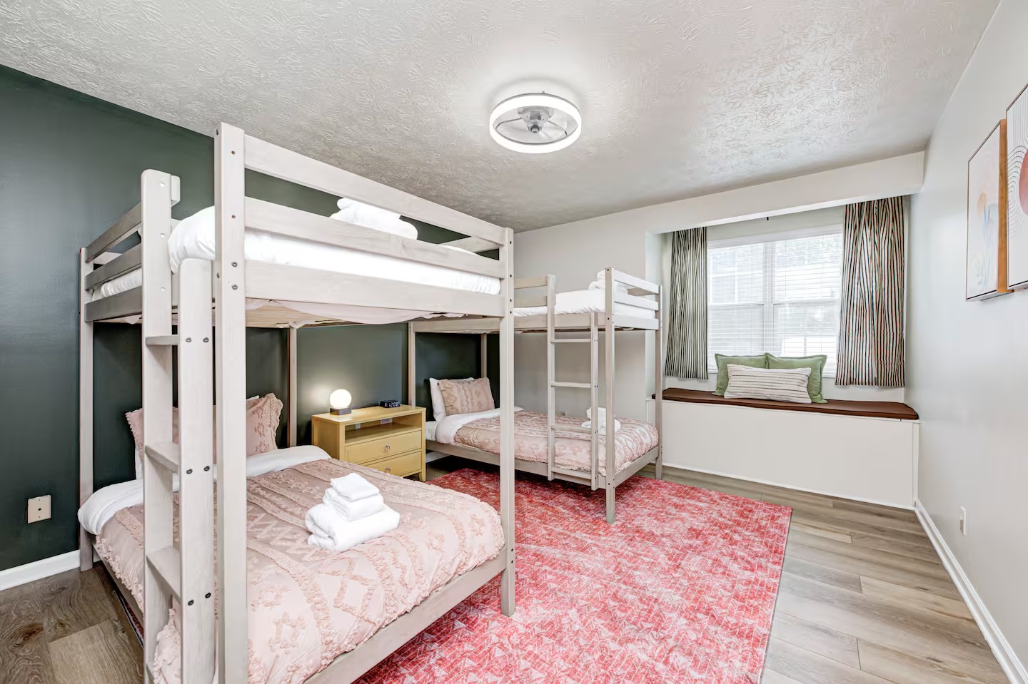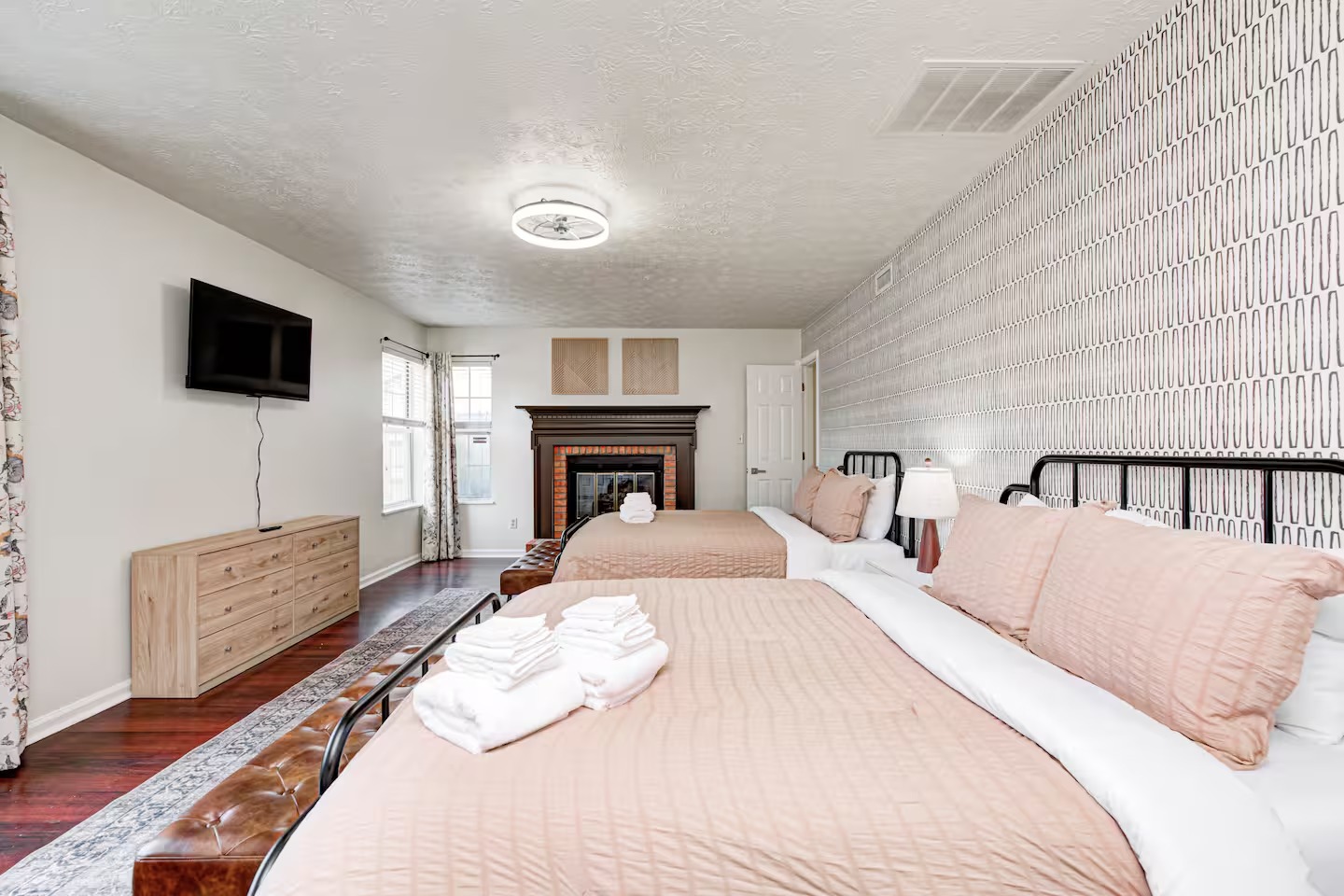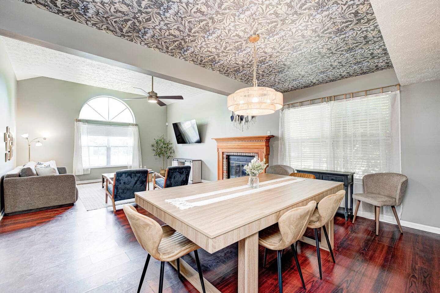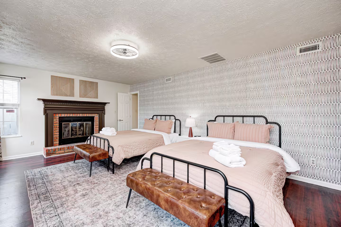 Welcome to this spacious 4-bedroom, 3.5-bath home located in a quiet, well-kept neighborhood near downtown Indianapolis. Designed for comfort and convenience, this home is perfect for families, large groups, business travelers, and long-term stays. Guests enjoy a private hot tub, seasonal above-ground pool, two cozy fireplaces, and a large open layout ideal for relaxing or gathering together. The home features fast high-speed WiFi, smart TVs, a smart thermostat, keyless entry, and both main-level and in-suite laundry for added ease. Additional family-friendly amenities include a dedicated children’s playroom, a fully fenced backyard, and pet-friendly accommodations. The fully stocked eat-in kitchen includes modern appliances, cookware, pantry essentials, a large island, and both casual and formal dining areas perfect for home-cooked meals or group dining. Centrally located near downtown Indianapolis with quick access to museums, theaters, shopping, restaurants, and major attractions. ✔Bedrooms & Sleeping Arrangements This home comfortably accommodates large groups with flexible sleeping options: Primary Suite: King-size bed, walk-in closet, and private en-suite bathroom with whirlpool tub and shower Bedroom Two: Two queen-size beds Bedroom Three: One queen-size bed Bedroom Four: Bunk bed setup (full/twin) or optional work-from-home space ✔Additional sleeping arrangements may be available upon request. ✔Kitchen & Dining Cook with ease in the fully equipped modern kitchen featuring: Full-size refrigerator, stove, oven, microwave, dishwasher, and disposal Pantry stocked with essentials, cookware, and tableware Large island with pendant lighting Eat-in breakfast area plus formal dining space Perfect for families, extended stays, and group meals. ✔Living & Entertainment Relax in the bright and spacious living room with comfortable seating and entertainment options including: Large smart TV with streaming services Accent chairs and ottomans for extra seating Board games and books for family fun Fireplace with modern décor and artwork ✔Bathrooms Enjoy three full bathrooms plus a convenient half bath, all stocked with essential amenities for a comfortable stay. ✔Outdoor Space Step outside to your private outdoor retreat featuring: Seasonal above-ground swimming pool Heated fiberglass spa hot tub Deck and screened porch Fully fenced yard for privacy and pets Outdoor seating and BBQ grill Perfect for relaxing evenings, family gatherings, or weekend fun. ✔Game Room Enjoy hours of entertainment in the arcade-style game room complete with: Pool table with pendant lighting 3-in-1 game table (air hockey, ping pong, and more) Comfortable seating, sofa, and bean bags Neon lighting and cushioned flooring for comfort Access is conveniently located through the laundry room off the kitchen. Kids’ Indoor Playroom A bright and fun-filled space designed just for children, featuring: Soft play equipment and safe flooring Age-appropriate toys and activities Child-sized table and chairs for crafts and games Large windows with natural light Comfortable seating for parents This family-friendly space ensures kids stay entertained rain or shine. ✔Parking & Access Guests enjoy easy self check-in with keyless entry and plenty of parking available in the private driveway and on the street. Whether you’re planning a family vacation, group trip, business stay, or extended getaway, this spacious pool home near downtown Indianapolis offers comfort, privacy, and top amenities. Reserve your stay today and experience the perfect balance of relaxation and convenience.