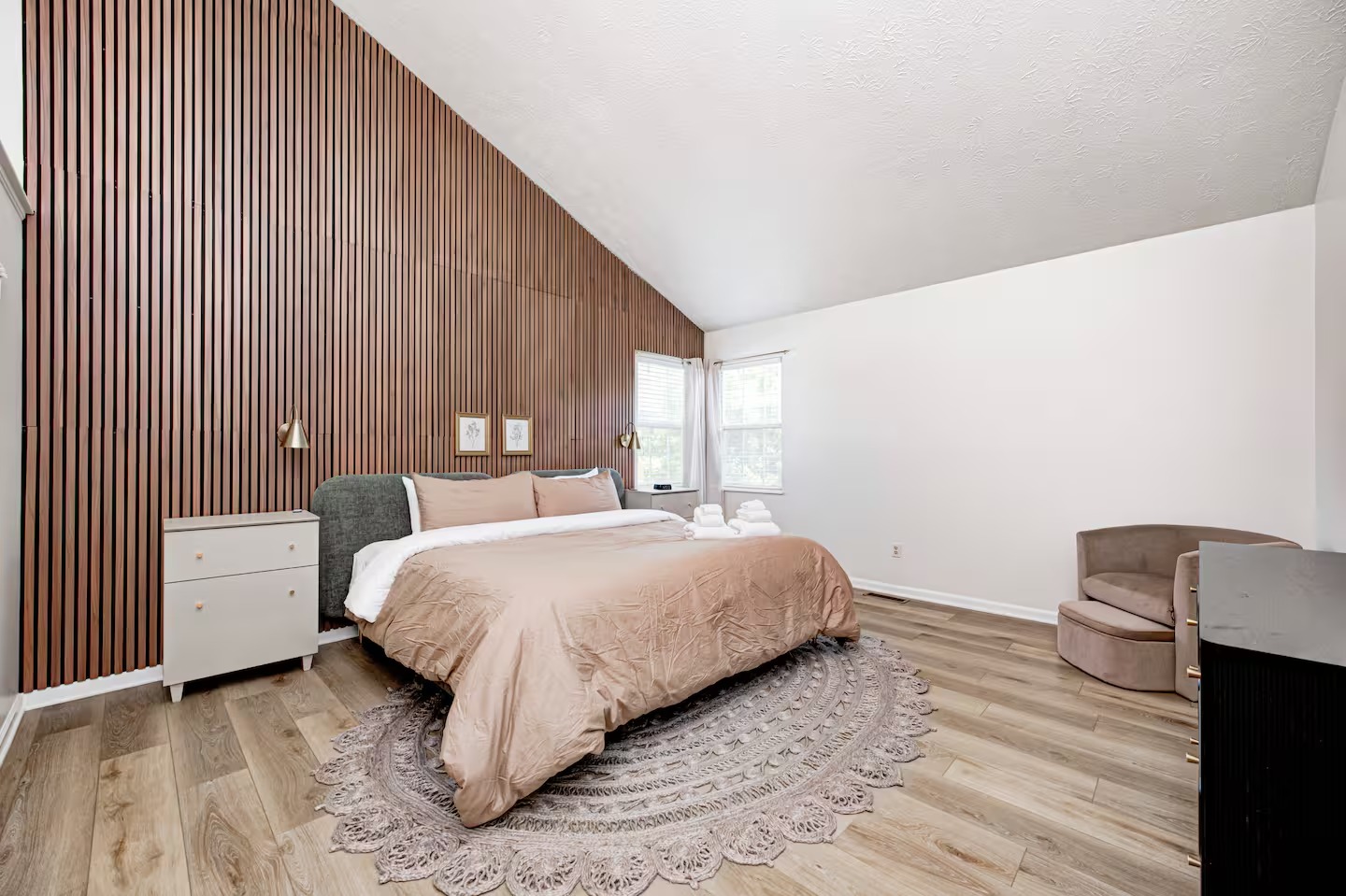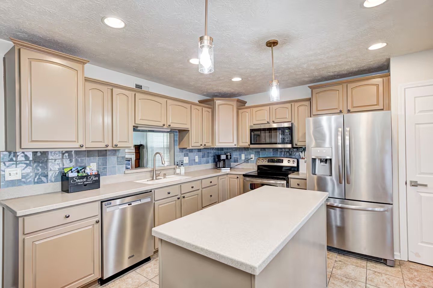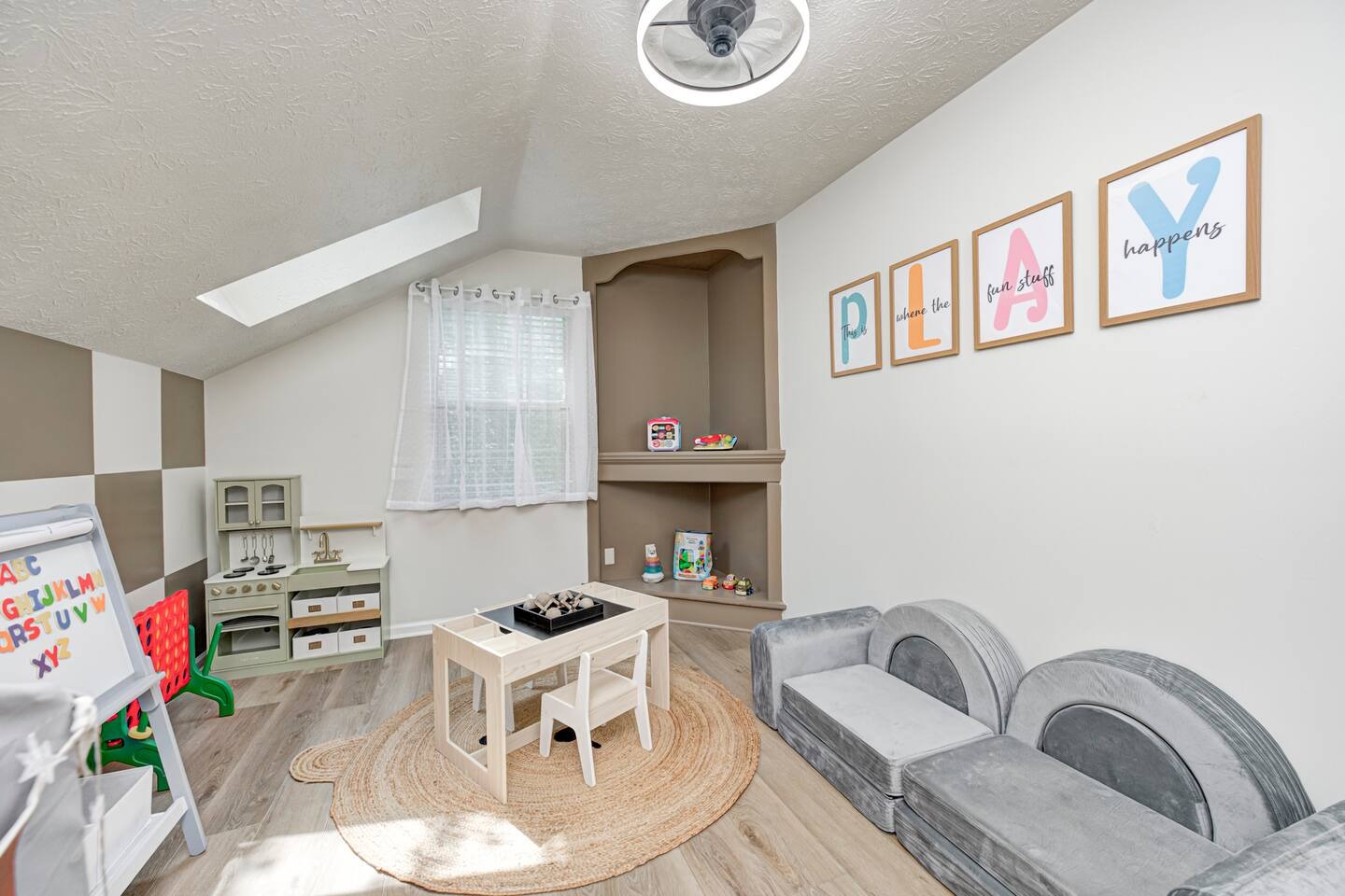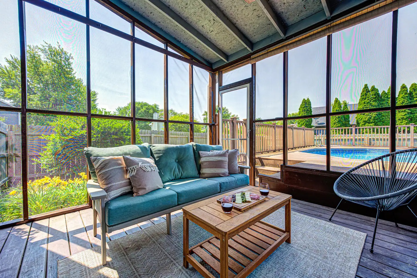 Welcome to this spacious 4-bedroom, 3.5-bath home located in a quiet, well-kept neighborhood near downtown Indianapolis. Designed for comfort and convenience, this home is perfect for families, large groups, business travelers, and long-term stays. Guests enjoy a private hot tub, seasonal above-ground pool, two cozy fireplaces, and a large open layout ideal for relaxing or gathering together. The home features fast high-speed WiFi, smart TVs, a smart thermostat, keyless entry, and both main-level and in-suite laundry for added ease. Additional family-friendly amenities include a dedicated children’s playroom, a fully fenced backyard, and pet-friendly accommodations. The fully stocked eat-in kitchen includes modern appliances, cookware, pantry essentials, a large island, and both casual and formal dining areas perfect for home-cooked meals or group dining. Centrally located near downtown Indianapolis with quick access to museums, theaters, shopping, restaurants, and major attractions. ✔Bedrooms & Sleeping Arrangements This home comfortably accommodates large groups with flexible sleeping options: Primary Suite: King-size bed, walk-in closet, and private en-suite bathroom with whirlpool tub and shower Bedroom Two: Two queen-size beds Bedroom Three: One queen-size bed Bedroom Four: Bunk bed setup (full/twin) or optional work-from-home space ✔Additional sleeping arrangements may be available upon request. ✔Kitchen & Dining Cook with ease in the fully equipped modern kitchen featuring: Full-size refrigerator, stove, oven, microwave, dishwasher, and disposal Pantry stocked with essentials, cookware, and tableware Large island with pendant lighting Eat-in breakfast area plus formal dining space Perfect for families, extended stays, and group meals. ✔Living & Entertainment Relax in the bright and spacious living room with comfortable seating and entertainment options including: Large smart TV with streaming services Accent chairs and ottomans for extra seating Board games and books for family fun Fireplace with modern décor and artwork ✔Bathrooms Enjoy three full bathrooms plus a convenient half bath, all stocked with essential amenities for a comfortable stay. ✔Outdoor Space Step outside to your private outdoor retreat featuring: Seasonal above-ground swimming pool Heated fiberglass spa hot tub Deck and screened porch Fully fenced yard for privacy and pets Outdoor seating and BBQ grill Perfect for relaxing evenings, family gatherings, or weekend fun. ✔Game Room Enjoy hours of entertainment in the arcade-style game room complete with: Pool table with pendant lighting 3-in-1 game table (air hockey, ping pong, and more) Comfortable seating, sofa, and bean bags Neon lighting and cushioned flooring for comfort Access is conveniently located through the laundry room off the kitchen. Kids’ Indoor Playroom A bright and fun-filled space designed just for children, featuring: Soft play equipment and safe flooring Age-appropriate toys and activities Child-sized table and chairs for crafts and games Large windows with natural light Comfortable seating for parents This family-friendly space ensures kids stay entertained rain or shine. ✔Parking & Access Guests enjoy easy self check-in with keyless entry and plenty of parking available in the private driveway and on the street. Whether you’re planning a family vacation, group trip, business stay, or extended getaway, this spacious pool home near downtown Indianapolis offers comfort, privacy, and top amenities. Reserve your stay today and experience the perfect balance of relaxation and convenience.