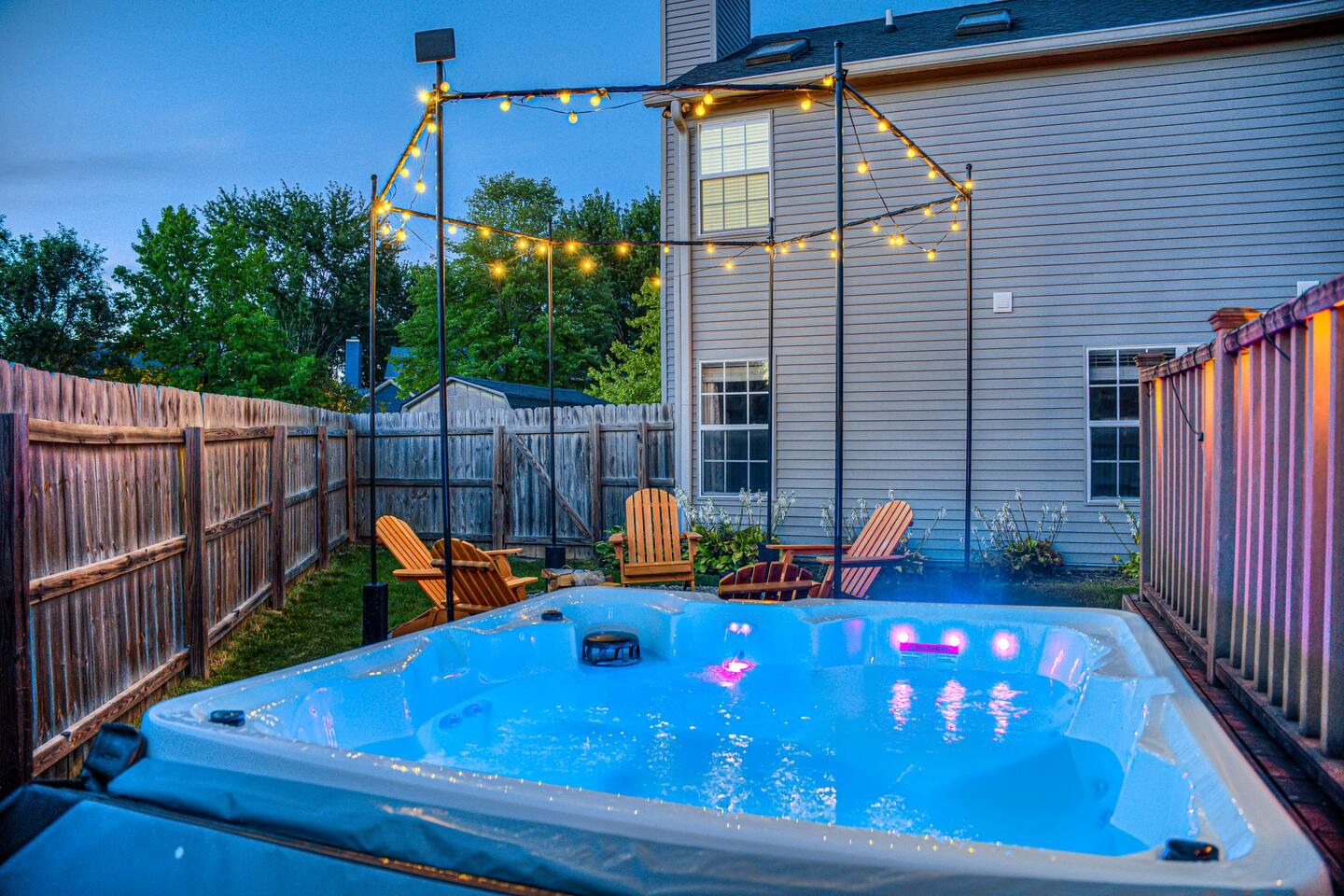 Enjoy a private swimming pool, relax in the hot tub, and spend quality time in the fully equipped game room. The home includes a pack and play, high chair, and a fully fenced yard that is safe for kids and pet friendly. Located just 8 minutes from downtown Indianapolis and only 15 minutes from Lucas Oil Stadium, you’ll be close to top attractions, dining, and entertainment. Guests enjoy high-speed WiFi, four smart TVs, and free on-site parking for added convenience. Book your stay today!!!!!!