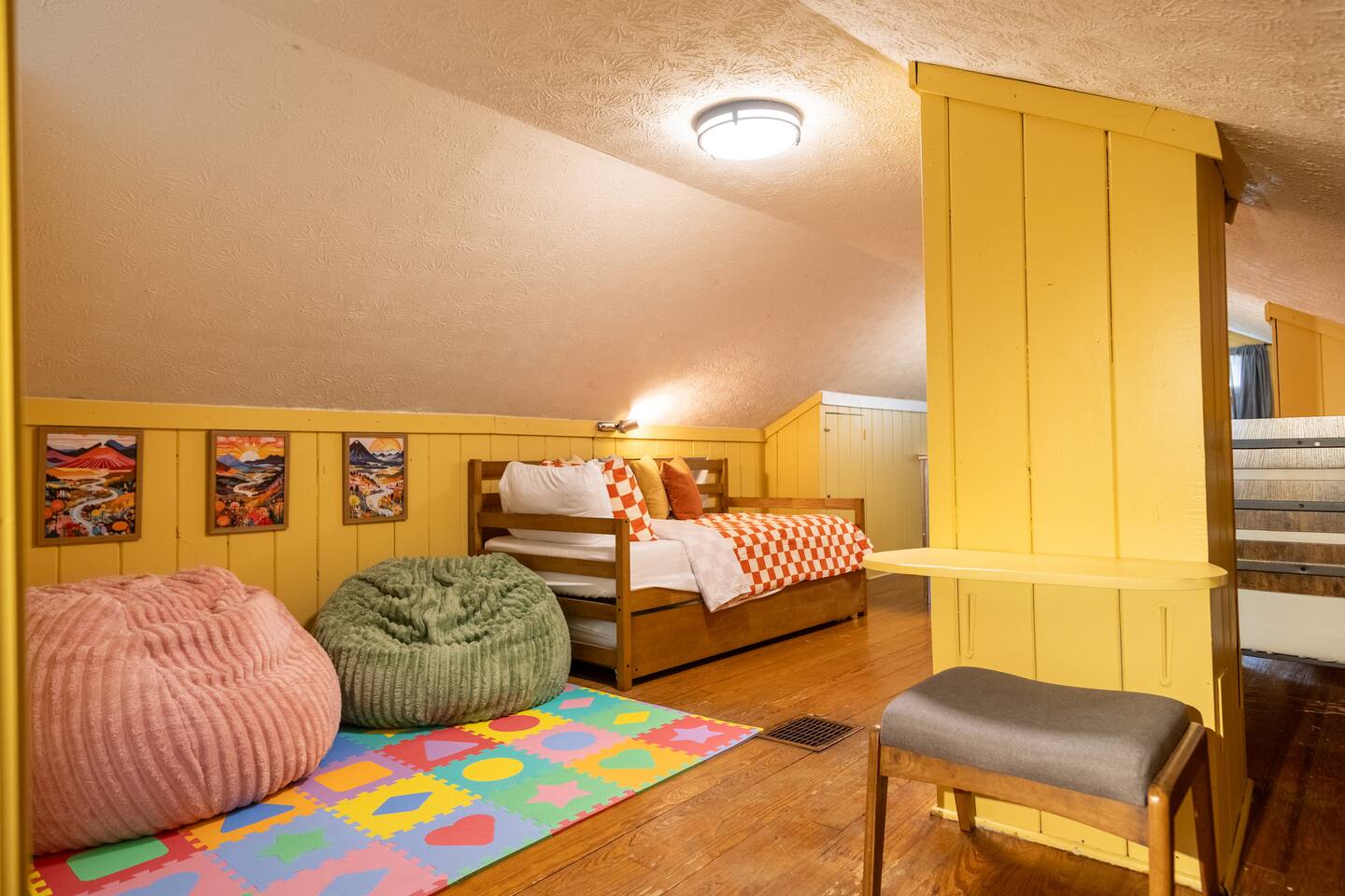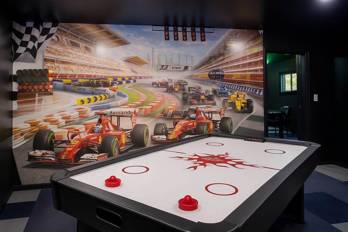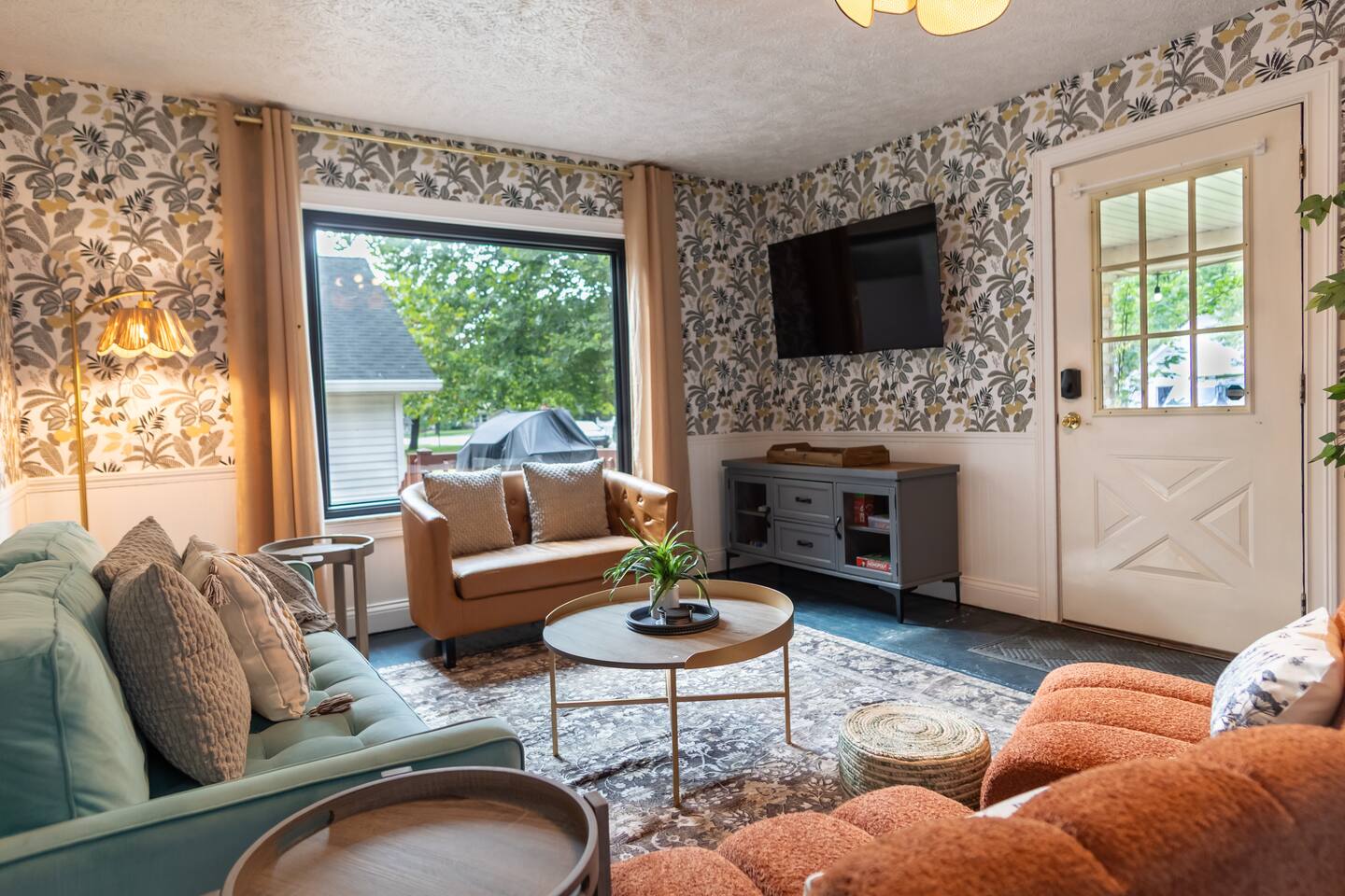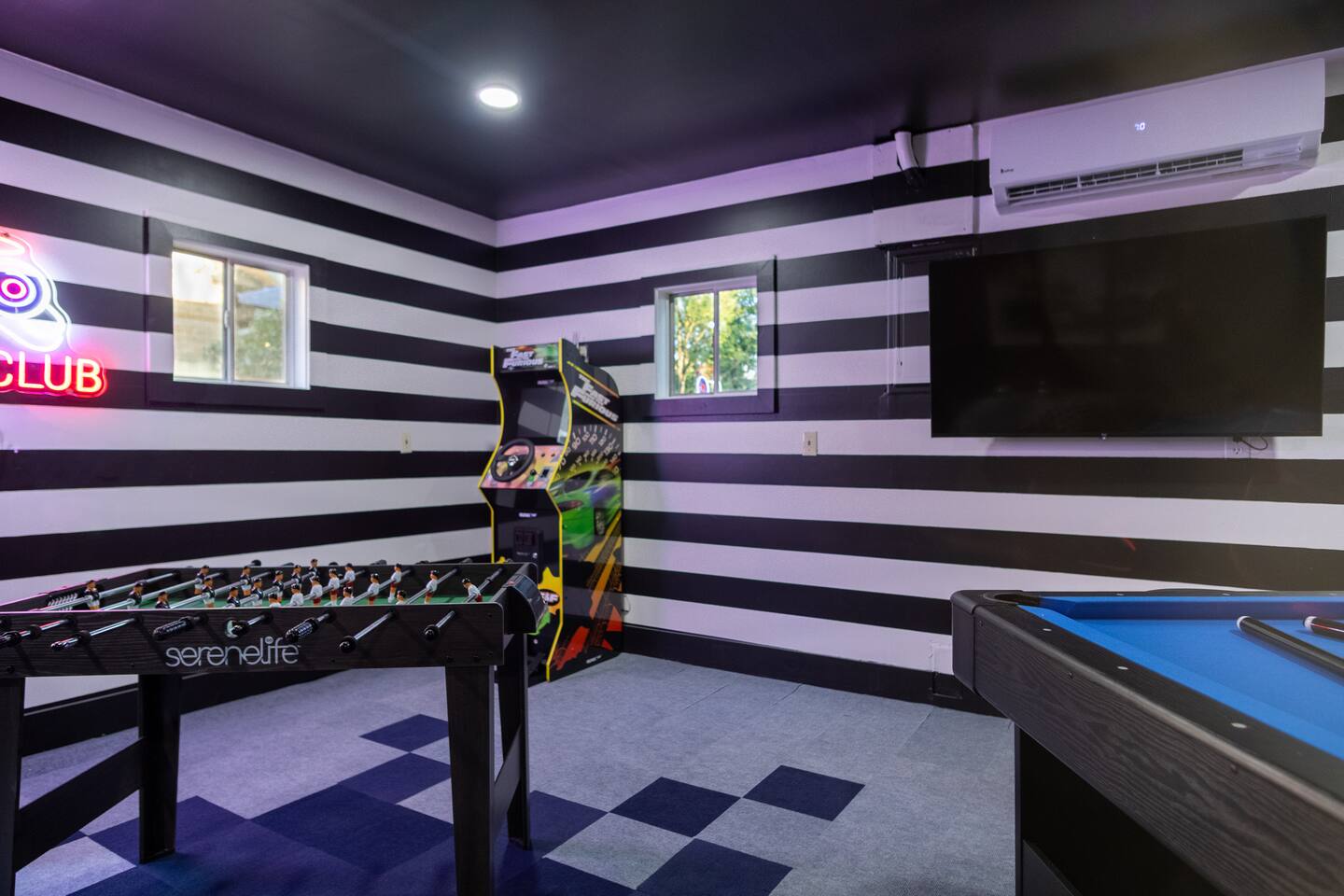 ✨ Welcome to Your Home Away from Home in Indy! ★ Kitchen ★ Fully stocked and ready for your cooking adventures: Complete spice rack, oil & vinegar, salt, pepper, and more. Coffee lovers: Keurig + drip coffee maker, stocked with pods, grounds, sweeteners, creamer & tea. Family-friendly: Kid plates, utensils & high chair provided. ★ Living Areas ★ Three inviting spaces to relax & connect: Family Room – Comfy sectional sofa + large Roku TV. Board games in the cabinet. Basement Theater – Projector screen for epic movie nights. Living Room – Bright, cozy space with a desk, bookshelves & a refined touch. ★ Bedrooms ★ All feature memory foam mattresses, soft bedding & extra pillows. Main Bedroom: King bed, Roku TV, 2 closets, space for a pack-n-play + 1 Queen Automatic Air Mattress Two Main Level Bedrooms: Queen beds + closets, hangers & luggage racks. Upstairs Bedroom: 3 twin beds + 1 Full automatic Air Mattress Basement: 1 Queen Automatic Air Mattress ★ Bathrooms ★ Two full baths with shower/tub combos. The loft bathroom has a quirky, low ceiling – mind your head! Stocked with shampoo, conditioner, body wash & hand soap. ★ Outdoor Spaces ★ Fully fenced backyard – pet & kid friendly. Gas Grill with charcoal & propane provided. Covered front porch + side deck with gas fire pit. ★ Indy 500 Game Room & Gym ★ 🏁 Race-themed fun meets fitness! 🎱 3-in-1 Champion’s Table: Pool • Air Hockey • Ping Pong ⚽ Foosball Showdown 🎯 Bullseye Dart Challenge 🏎️ Race to Victory Arcade Game 📺 Big Screen + Neon Glow Zone 🎨 Racing Art & Trackside Wallpaper 🪩 Speedway Vibes with custom flooring & décor 💪 Power Up Fitness Gym Zone ❄️ Mini Split AC ★ Theatre Room ★ 🔥 Reclining chairs & bean bag seating 🍿 Popcorn machine 💡 Neon sign + sideboard ✨ Carpet flooring + warm yellow LED lighting 🛋️ Plush pillows & inserts ★ HOT TUB★ Relaxing 6-Seater Hot Tub for Ultimate Comfort Unwind in your very own private 6-seater hot tub, nestled in a peaceful outdoor space perfect for a tranquil evening or a soothing soak after a day of adventure. Whether you're here for a romantic getaway, family retreat, or simply want to relax in luxury, this hot tub offers the perfect escape. ★ Amenities Provided ★ Kitchen: Spices, coffee, pods, tea, sugar, sweeteners, creamer, dish soap, dishwasher pods, hand soap. Outdoor: Charcoal, propane. Kids: Pack 'n Play, high chair, kid dishes. Entertainment: Roku TVs, projector screen, board games, books. Bedrooms: Extra blankets. Laundry: Detergent, dryer sheets. ★ Drive Times to Top Attractions ★ - Lucas Oil Stadium 15 mins - Convention Center 16 mins - Children’s Museum 21 mins - Indianapolis Zoo 19 mins - Indy Speedway 25 mins - Bottleworks 17 mins - Airport 18 mins